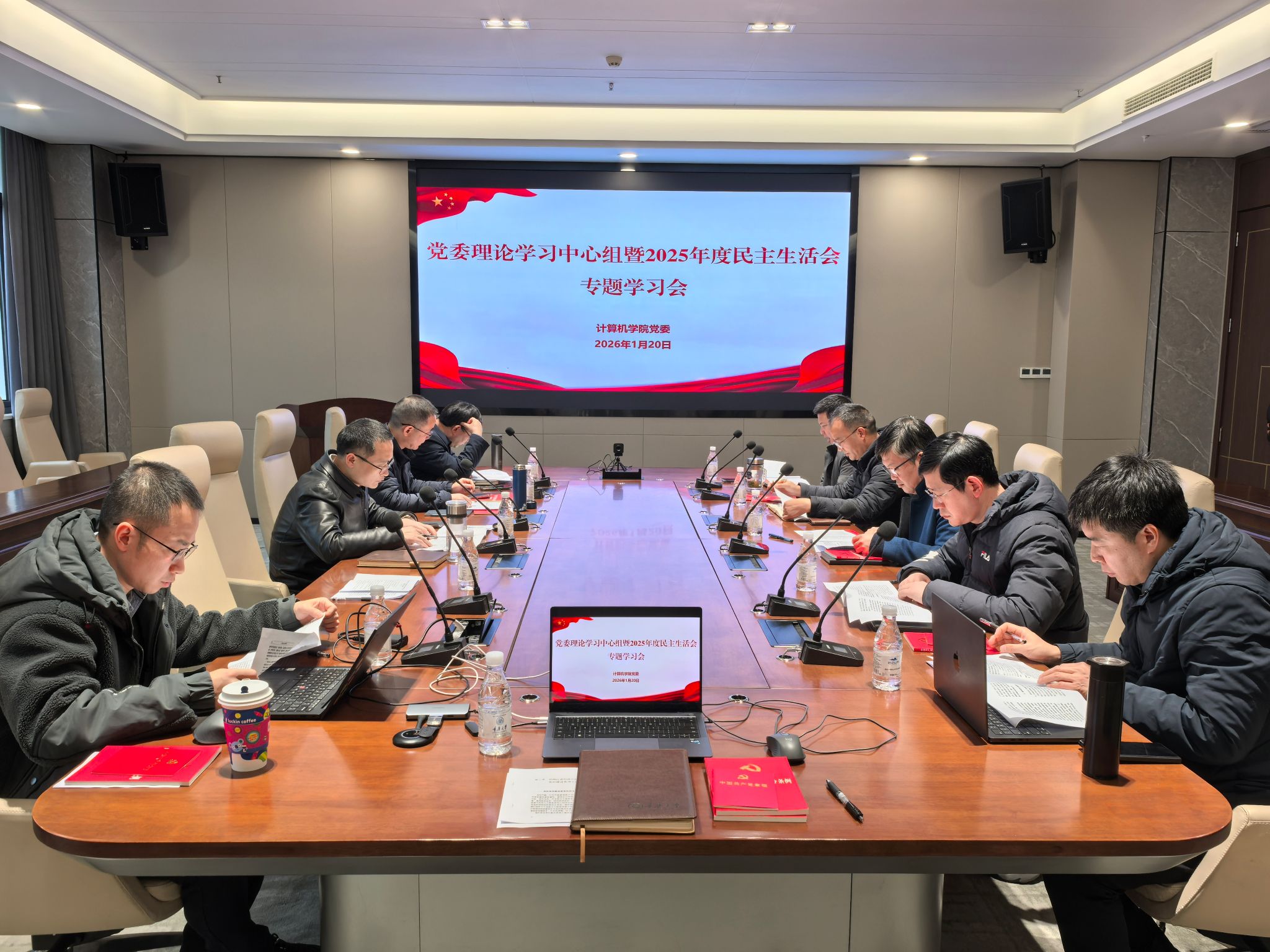 2026年1月20日下午,计算机学院党委理论学习中心组在学院B409会议室召开2025年度民主生活会专题学习会。学院党委书记杨守鸿主持会议并讲话,院长向涛等党政班子成员、党委委员、纪委委员参加会议。会议聚焦“学深悟透党的创新理论,以过硬作风凝聚奋进力量,开创事业发展新局面”的核心要求,组织班子成员原原本本、逐字逐句学习了《中国共产党章程》《习近平总书记关于党的建设的重要思想概论》《论党的自我革命》相关篇章内容...
