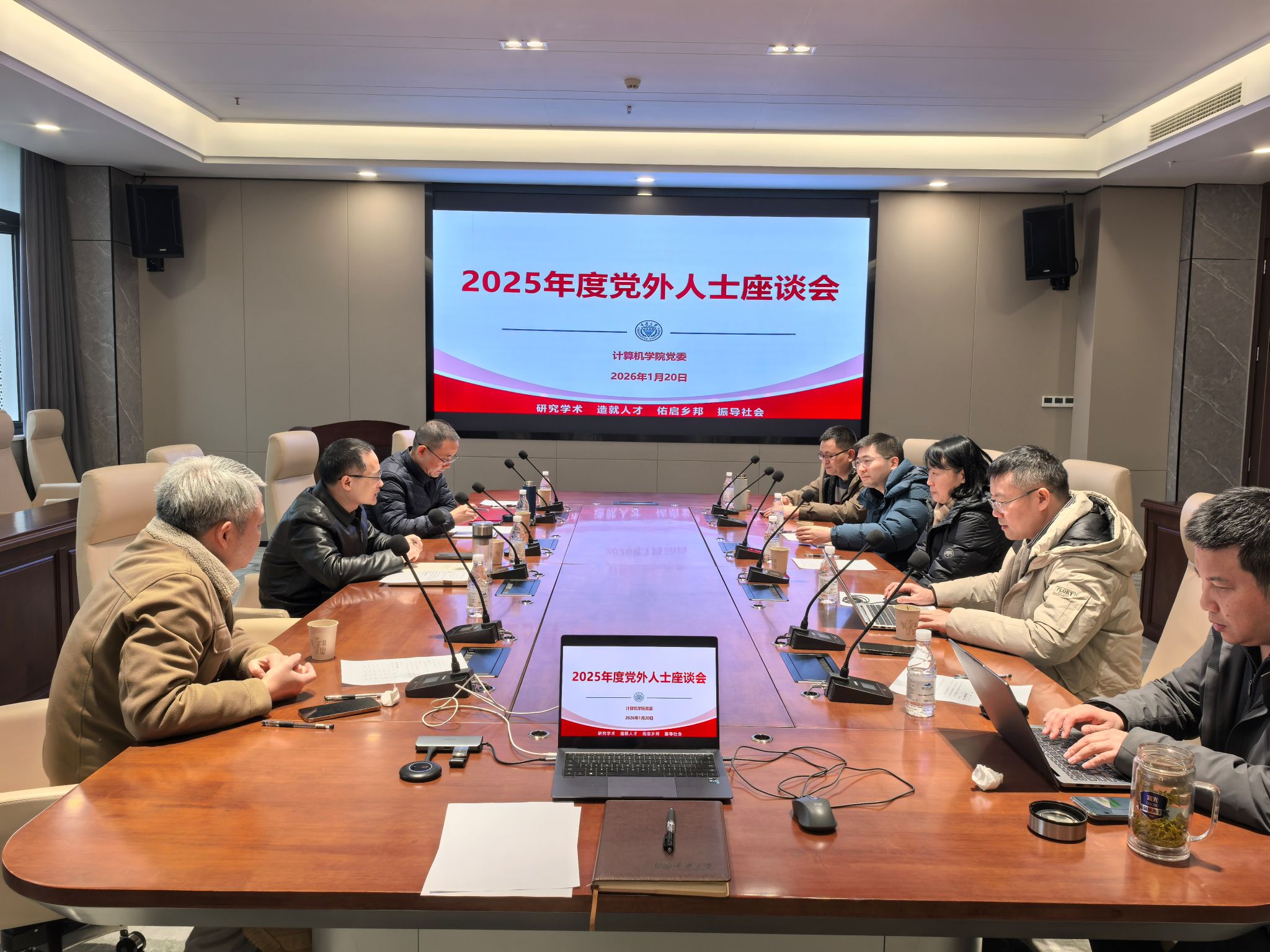 2026年1月20日上午,计算机学院党委在学院B409会议室召开2025年度党外人士座谈会。学院党委书记杨守鸿主持会议,院长向涛、党委统战委员刘慧君、组织委员刘霜与五位党外人士教师代表参加了会议。会议伊始,杨守鸿代表学院班子向与会党外人士教师代表通报了学院2025年发展建设情况,并表示,学院各项成绩的取得,离不开包括党外人士在内的全体师生的共同努力,并对大家一直以来的辛勤付出与鼎力支持表示感谢。在交流发言环节,...