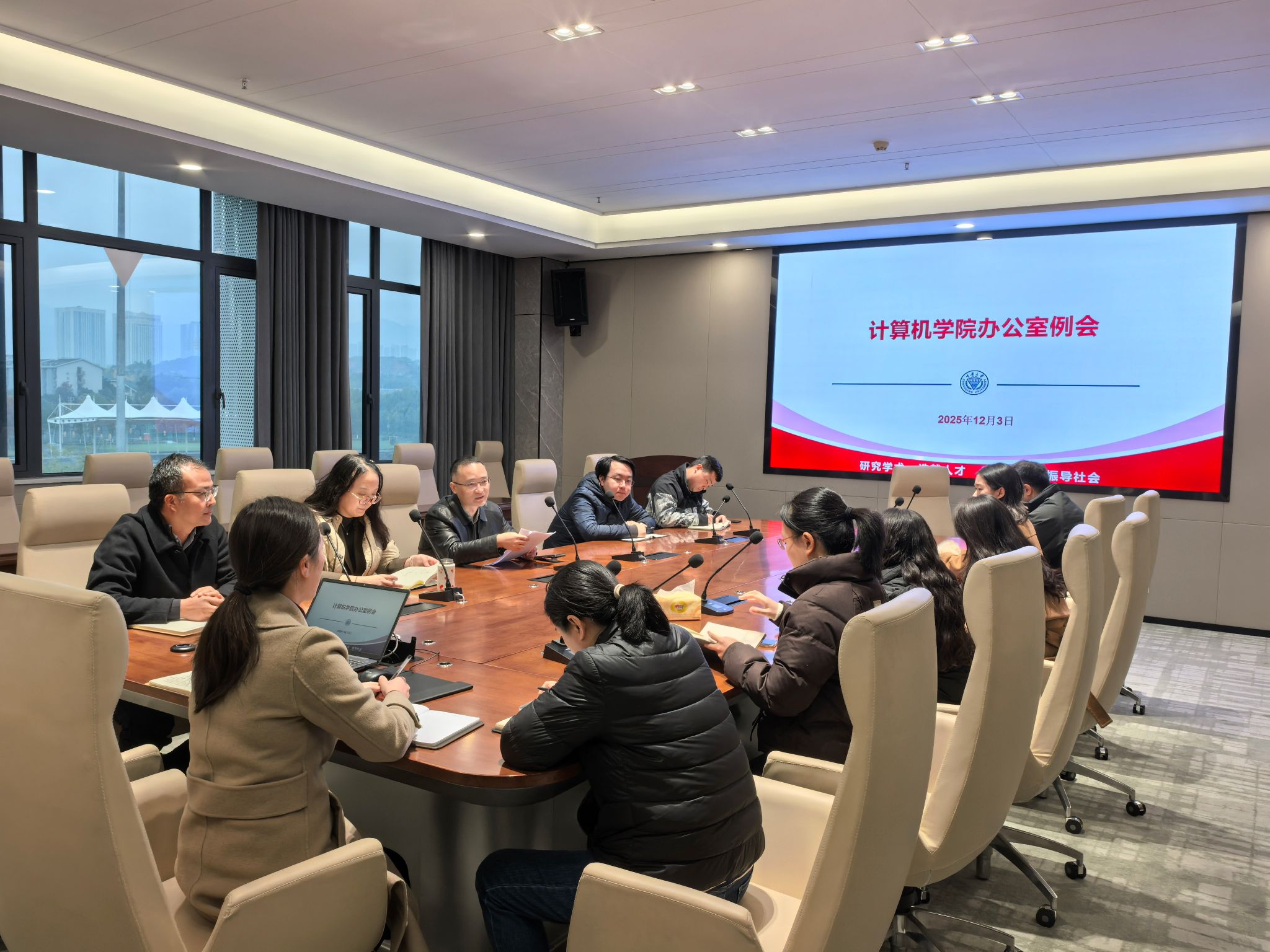 12月3日上午,计算机学院在虎溪校园信息技术科研大楼B409会议室召开办公室工作例会。会议由学院党委书记杨守鸿主持。学院党委副书记、纪委书记秦四齐及全体办公室行政人员、辅导员参加会议。本次会议围绕强化作风建设、提升管理服务水平、规范内部运行、推进重点工作、完善巡视整改进展情况台账等工作进行了研究和部署。会议首先对办公室工作作风提出明确要求。杨守鸿强调,全体办公室人员须严格遵守科学城校区工作作息时间,切...
