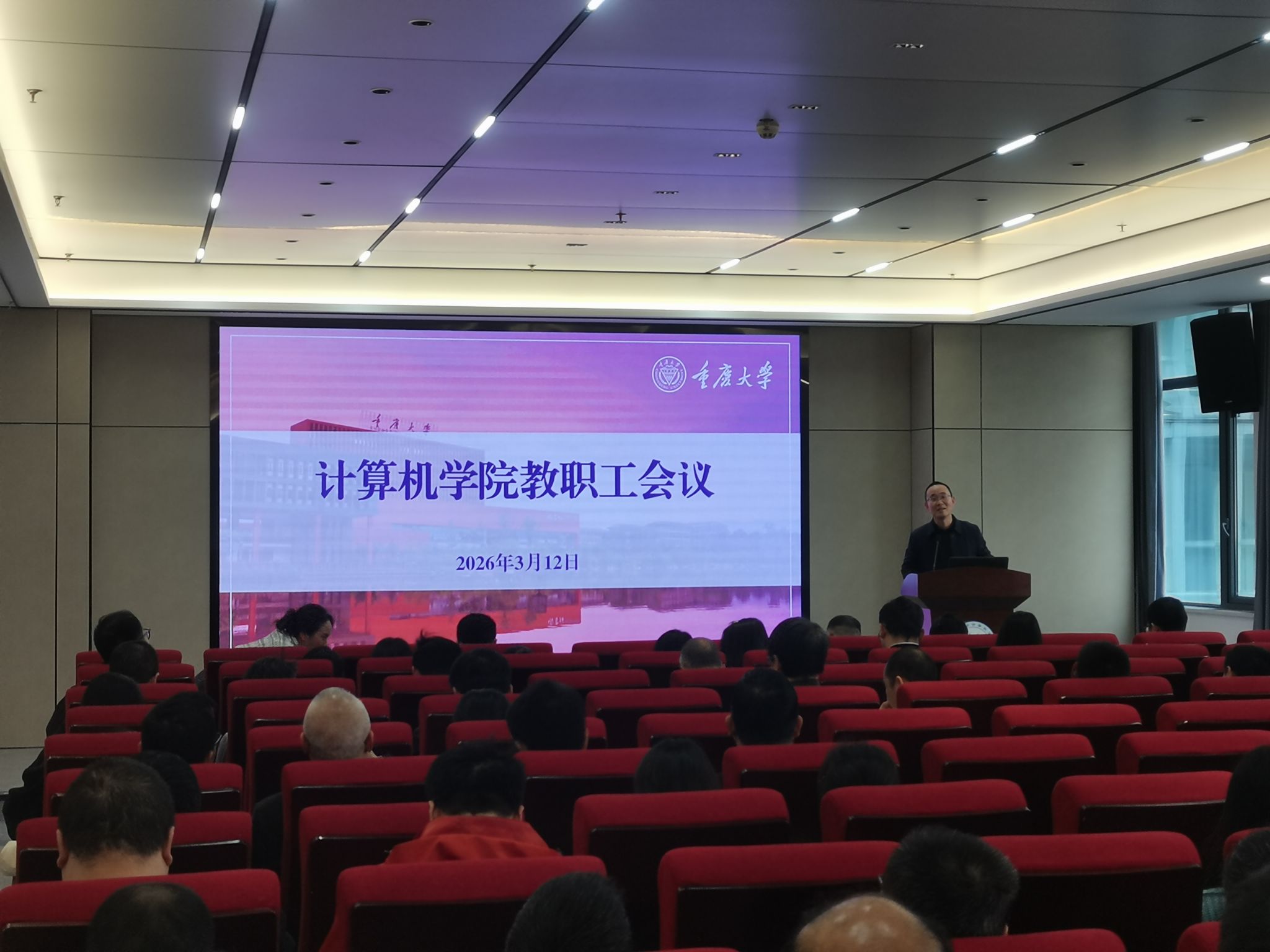 3 月 12 日下午,重庆大学计算机学院教职工会议在虎溪校区信息技术科研楼B413召开。会议由院长向涛主持,学院全体教职工参加会议。会议紧扣学校发展部署,全面安排部署新学期学院党建、学科科研、教育教学等各项重点工作。