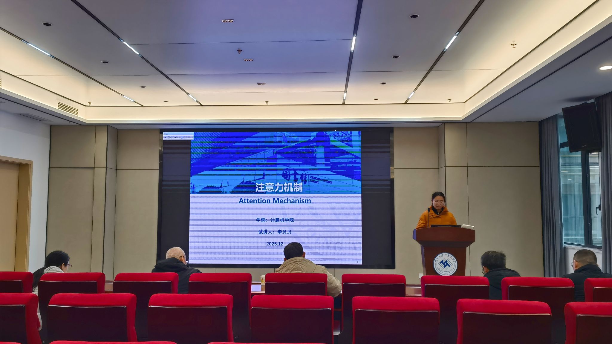 2025年12月26日上午,计算机学院在信息技术科研楼B413组织开展了2025年度新入职青年教师试讲展示活动。李贝贝、闫洁露、魏楷文、刘高、谢梦颖等五位青年教师依次登台进行试讲。