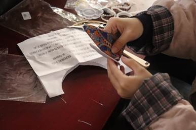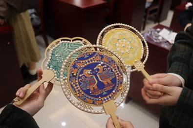 随后,同学们便领取材料包,按照教程投入到创作中。从挑选纹样、绷紧扇面,到穿珠走线、粘贴流苏,大家在纤细的针线与温润的珠光中逐渐沉浸,暂时忘却了科研的忙碌。计算机学院的硕士生蒲佳嘉同学说:“平时总是在和代码打交道,没想到自己也能做出这么古典的扇子。这种沉浸式的体验非常解压,也让我对传统文化有了更深的敬意。”