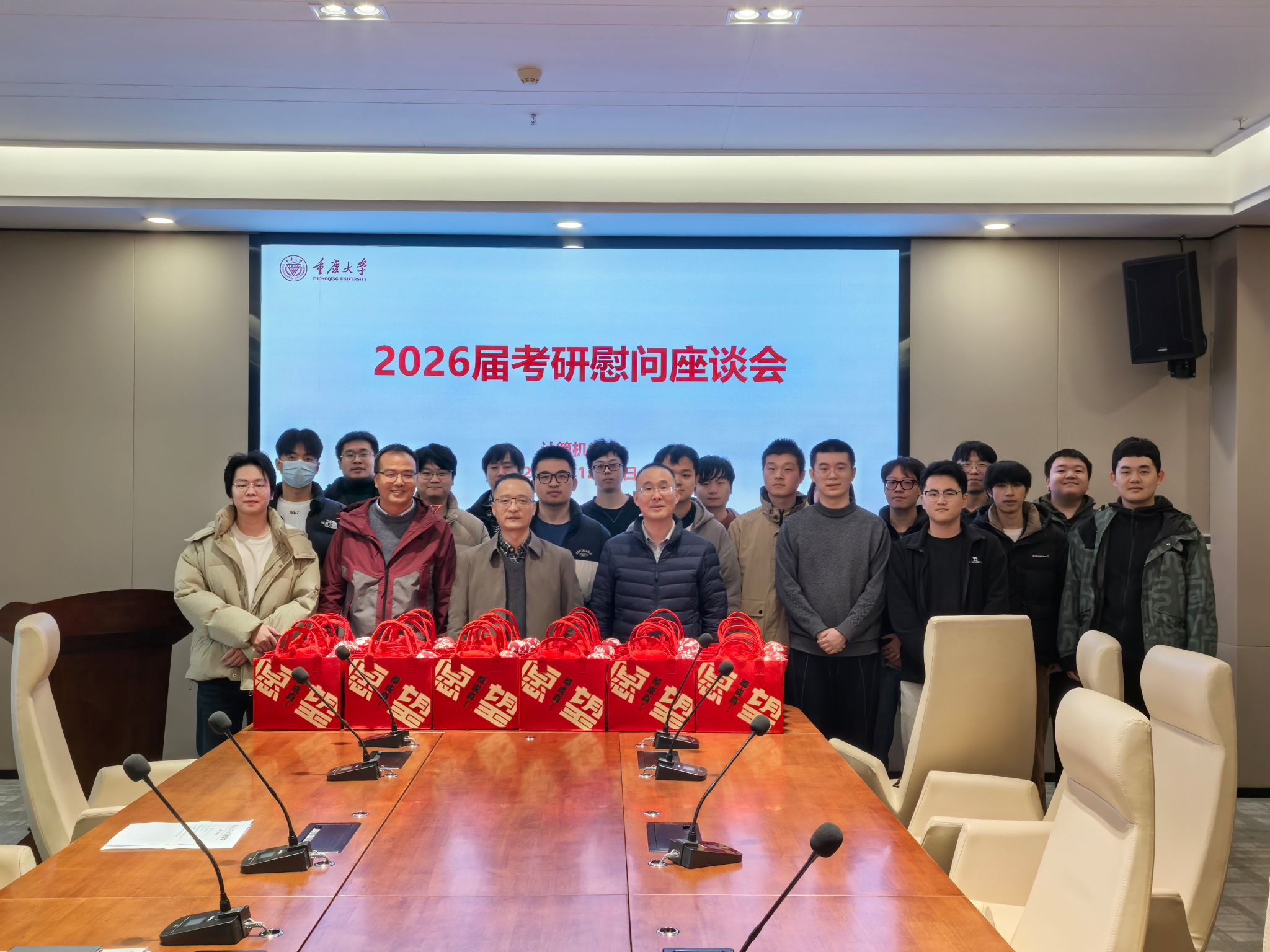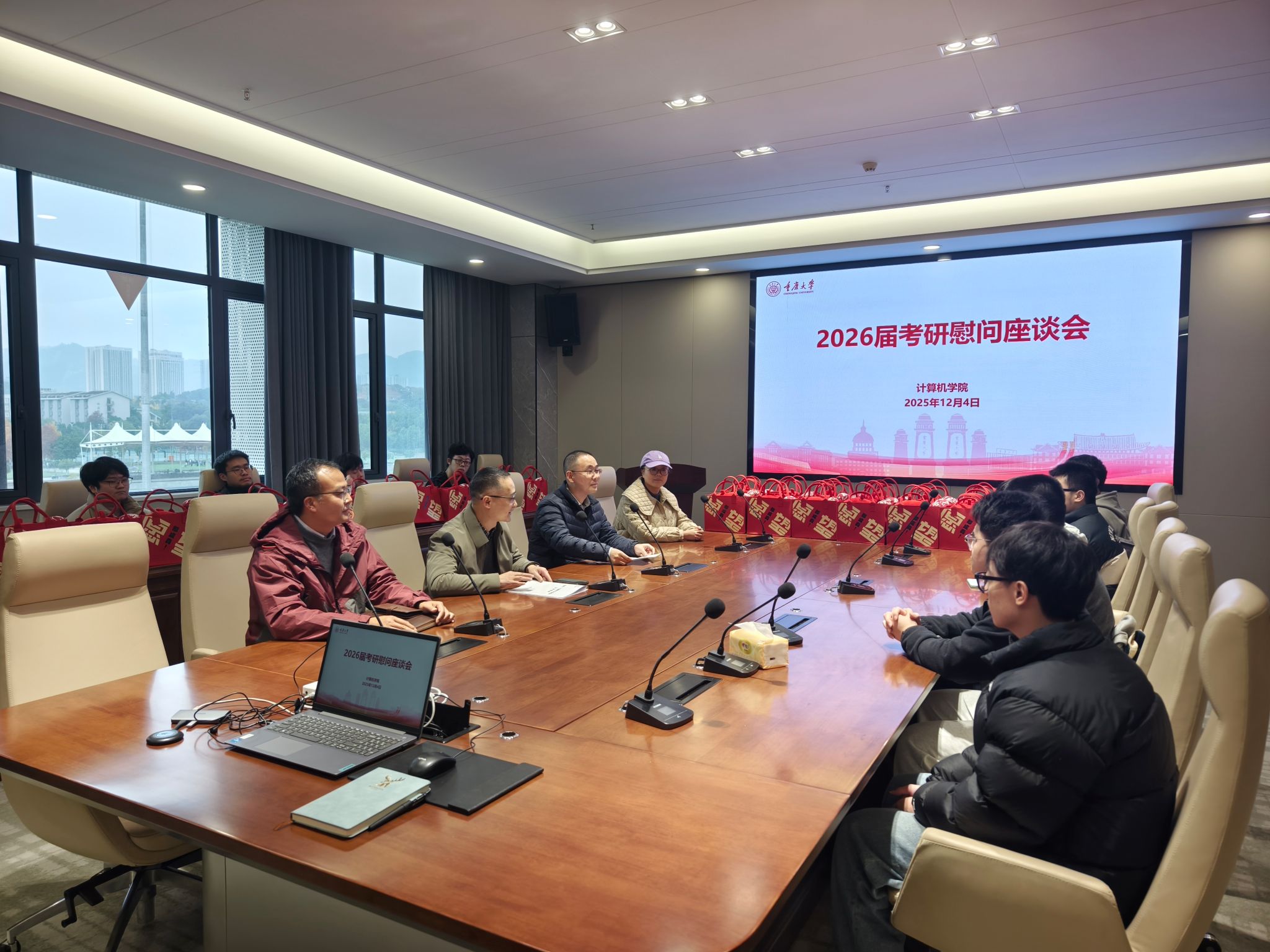 为传递学院关怀、鼓舞考研士气,我院于12月4日在信息大楼B409会议室举办2026届考研慰问座谈会。学院党委书记杨守鸿,院长向涛,党委副书记、纪委书记秦四齐、毕业班辅导员谢璧如及备战研究生考试的学生代表参加了本次活动。