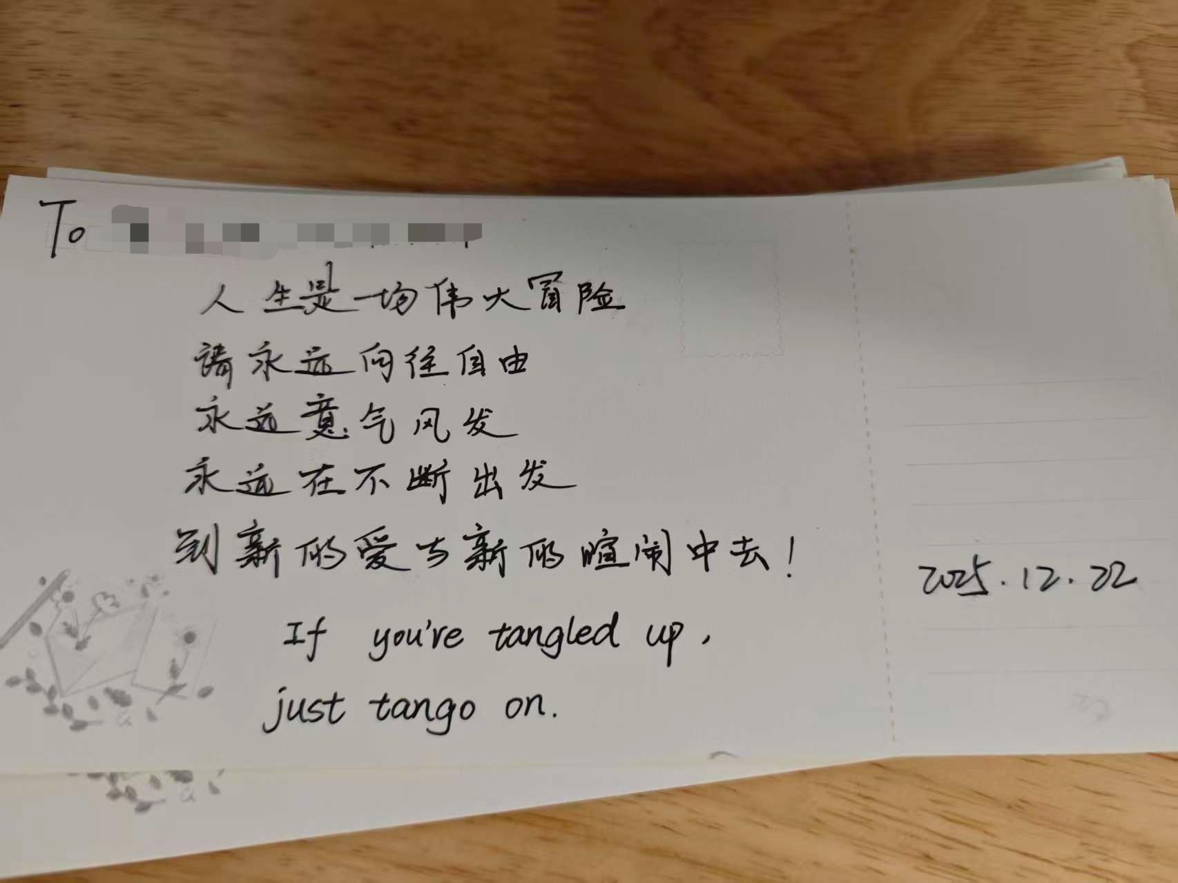 活动虽已落幕,温情仍将延续。工作人员已将收集到的明信片悉心整理并妥善封存。待到2026年岁末,这些承载着初心与梦想的信件将通过邮件等形式准时“返航”,让每位参与者重温当初的期许与感动。