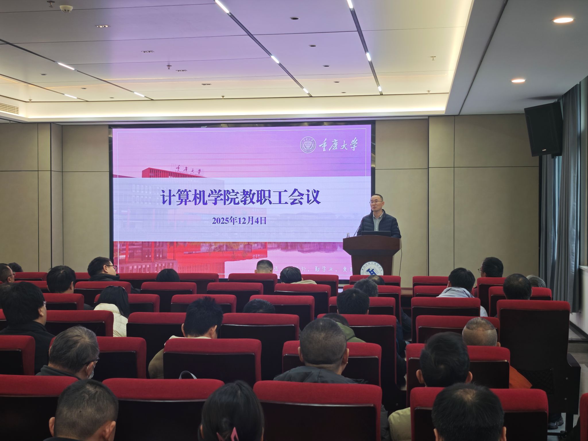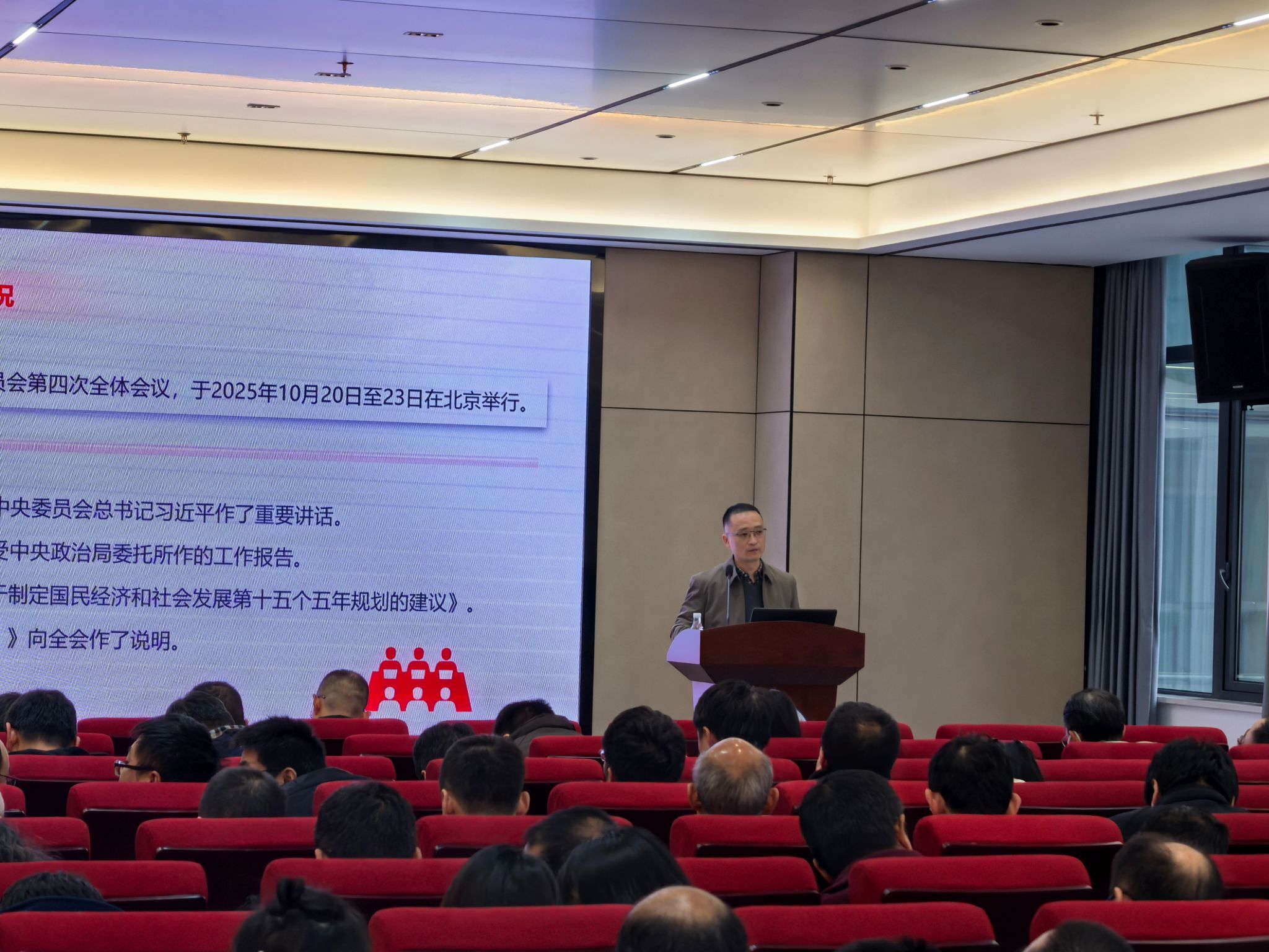 2025年12月4日下午,计算机学院党委在科学城校区信息技术科研大楼B413会议室组织召开党的二十届四中全会精神宣讲会。会议由学院院长向涛主持,党委书记杨守鸿作专题报告,学院班子成员、全体教职工和学生代表参加学习。